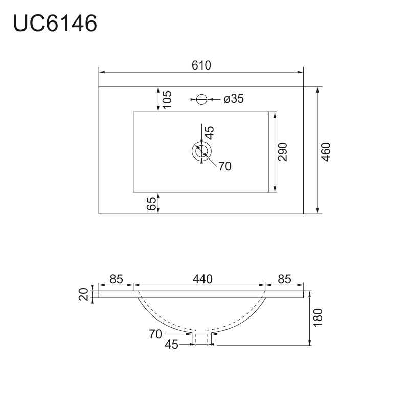Mailo, kúpeľňová skrinka s umývadlom, 610x720x476 mm, sivá kameň, mat, čierne madlo CN550B