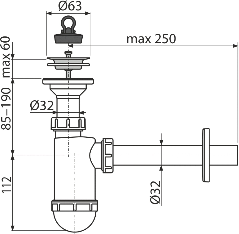 ALCA A410 Sifón umývadlový DN32 s nerezovou mriežkou DN63