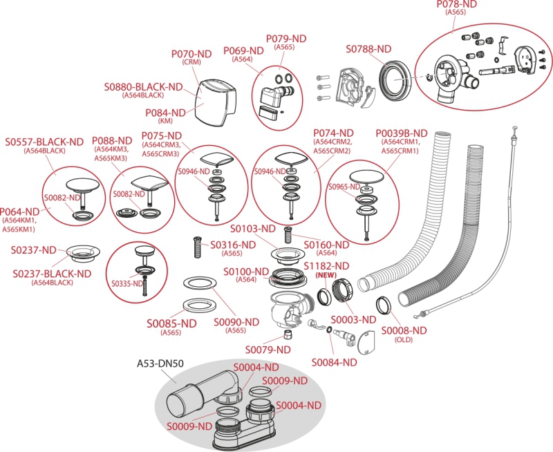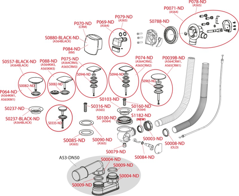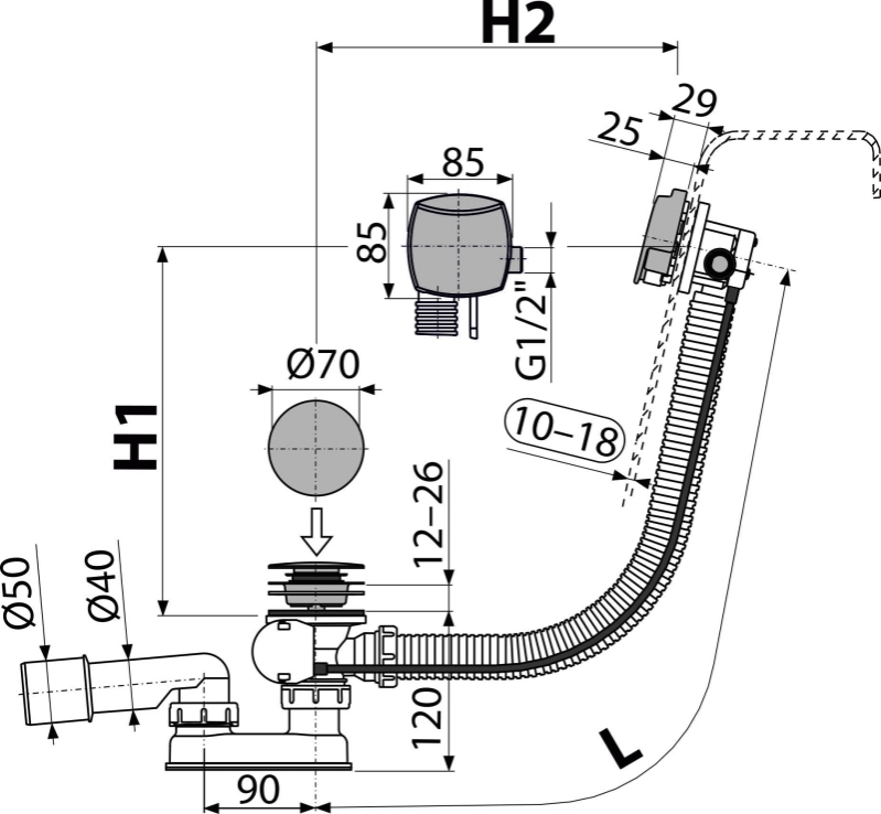 ALCA A565CRM1 Sifón vaňový automat s napúšťaním prepadom pre hrubostenné vane, chróm
