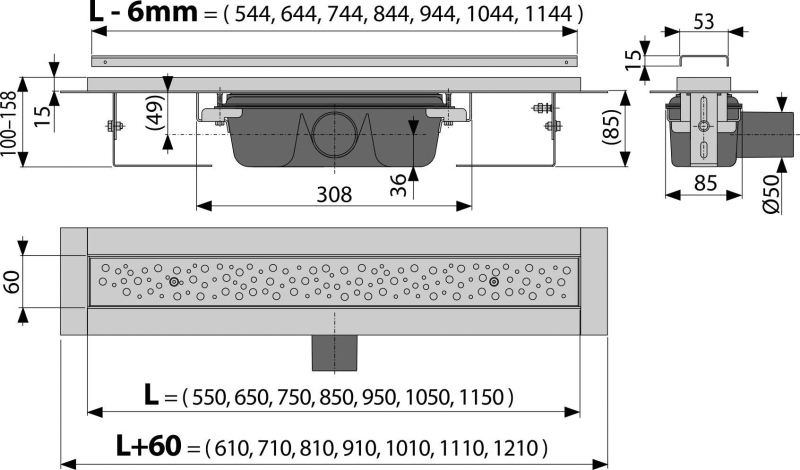 ALCA APZ11-950M Antivandal - Podlahový žľab Antivandal s roštom