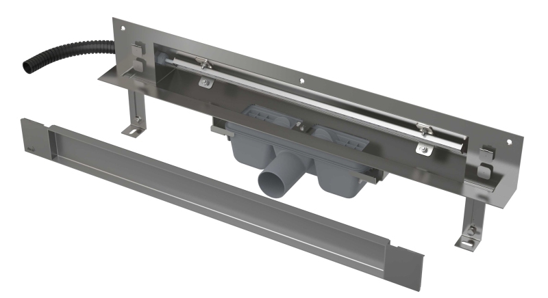 Podlahový žľab z nerezovej ocele (zušľachtenie materiálu morením a pasiváciou, elektrochemické preleštenie)