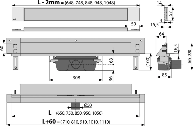 ALCA APZ5-TWIN+AEZ122-750 Spa Odtokový systém na zabudovanie do steny na vloženie obkladu