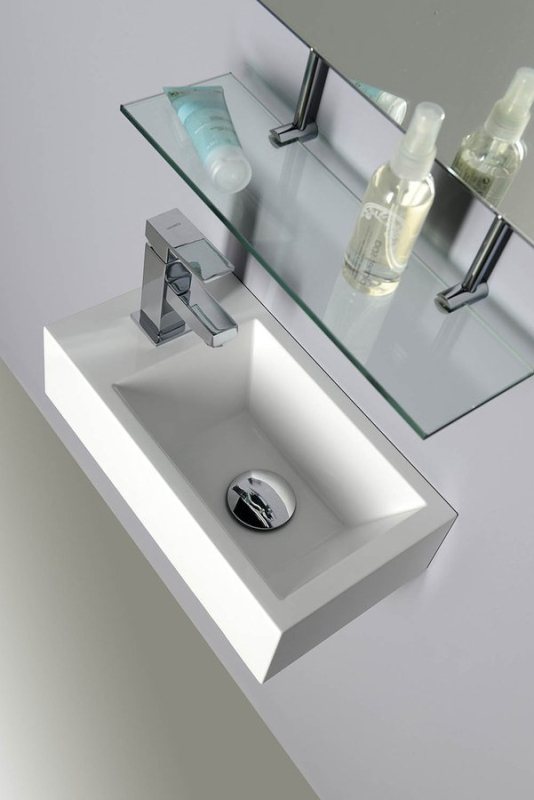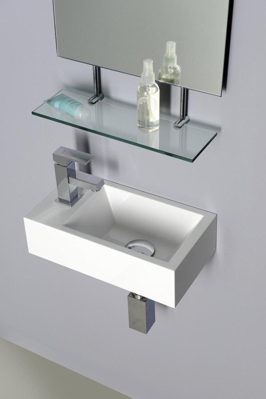 ARIANA umývadlo 50x10x25cm, liaty mramor, biela, batéria vľavo SM012