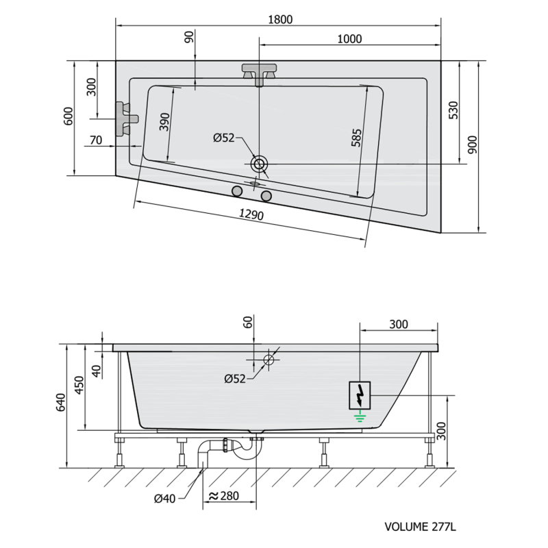 ANDRA R hydromasážna vaňa, 180x90x45cm, Active Hydro, chróm 56842