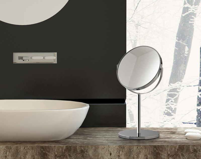 ANNA kozmetické zrkadlo na postavenie, Ø 163mm, obojstranné, chróm