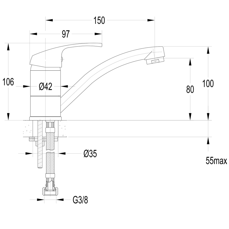 AQUALINE 35 umývadlová batéria s otočnou hubicou, bez výpuste, chróm 52196