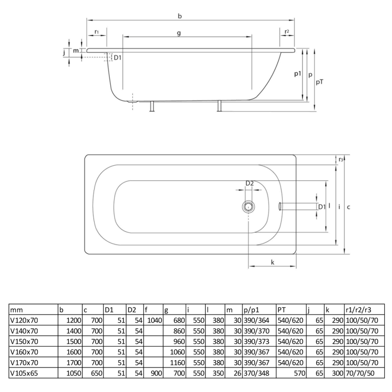 Aqualine Obdĺžniková smaltovaná vaňa 140x70x39cm, biela V140X70