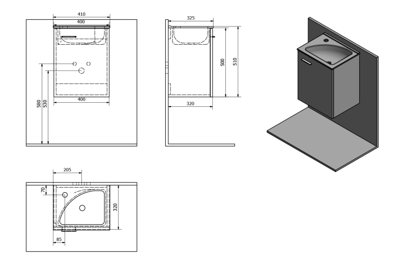 - Možnosť výberu strany otvárania dvierok pri montáži (Otvory pre úchytku sú z vnútornej strany naznačené. Podľa zvolenej strany otvárania je potrebné ich vyvŕtať.)