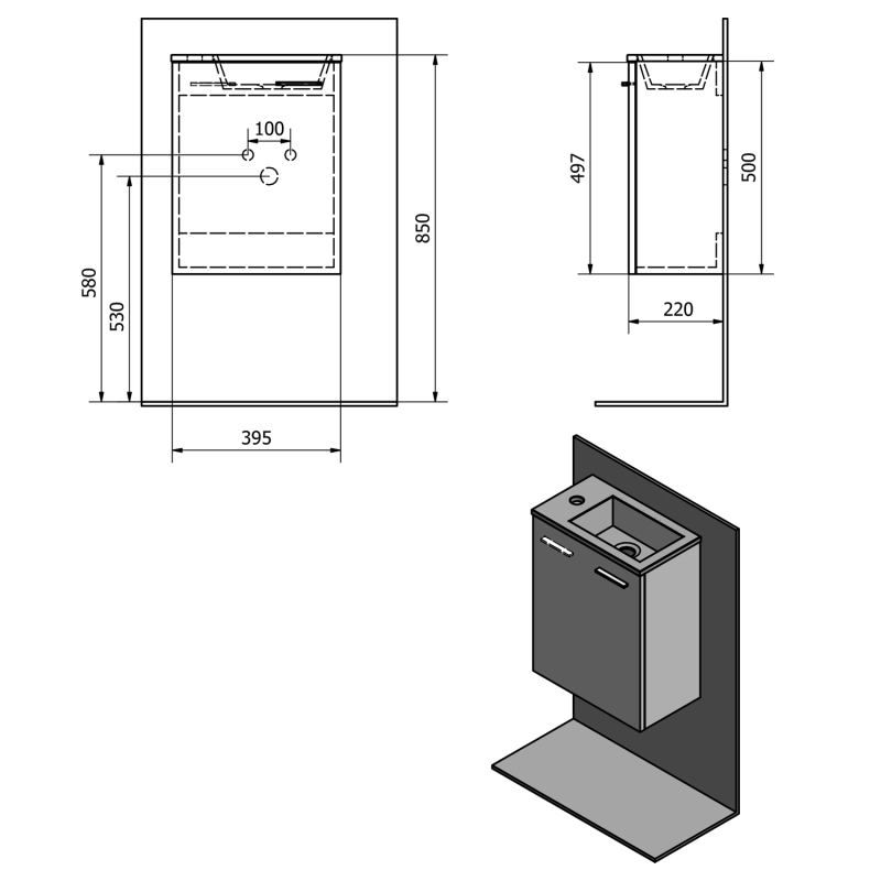 Aqualine ZOJA umývadlová skrinka 39,5x50x22cm, dub platin 51049DP