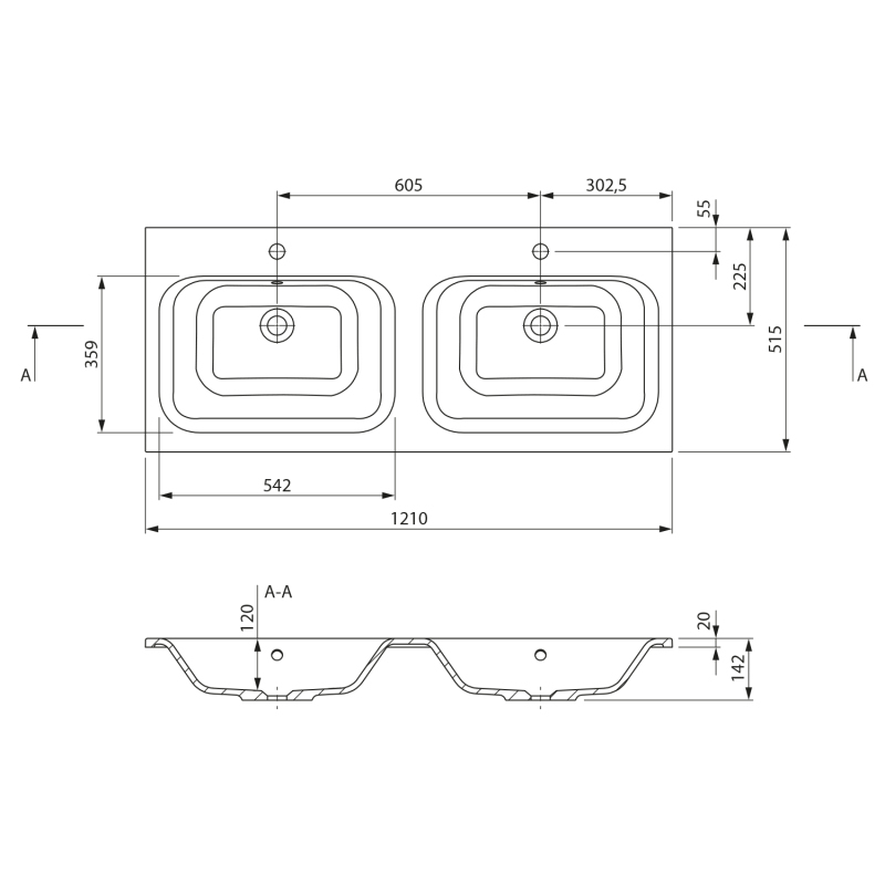 | Typ umyvadla | Dvojumyvadlo |