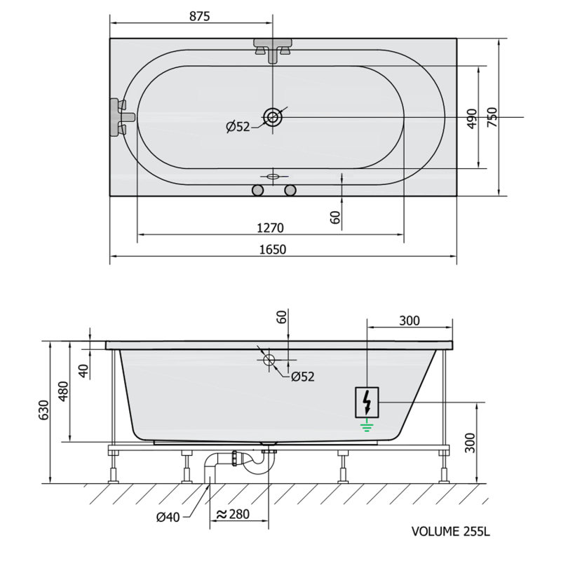 ASTRA B hydromasážna vaňa, 165x75x48cm, Attraction Hydro-Air, chróm 56863