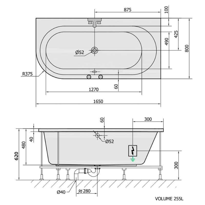 ASTRA R hydromasážna vaňa, 165x80x48cm, Attraction Hydro-Air, chróm 56857