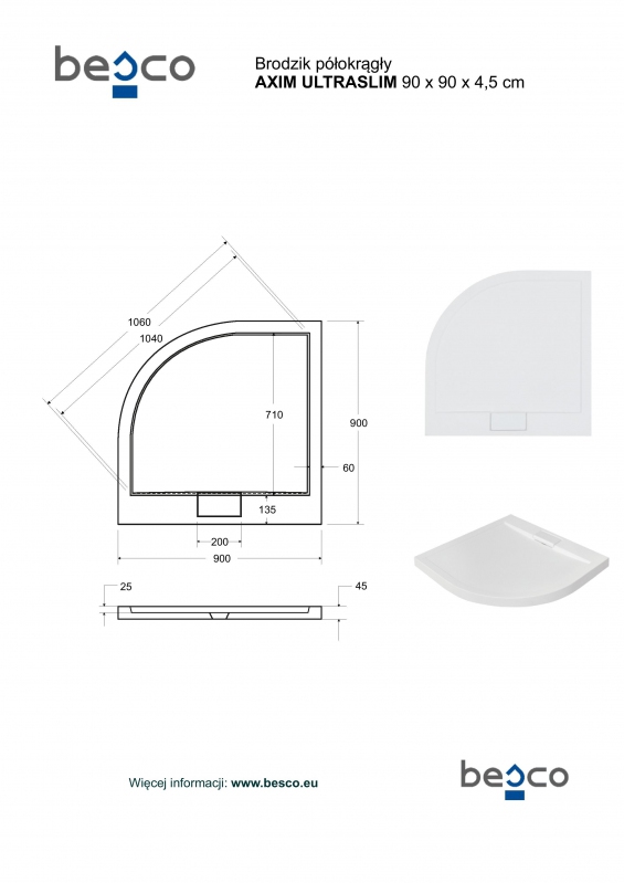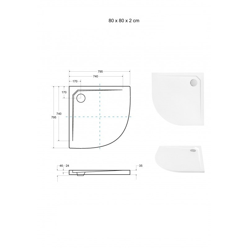do 10 dní v e-shopeAXIM ŠTVRTKRUH akryl. vanička, 80x80x4, 5 cm, R550, biela farba, bez nožičiek VANKAXIM80BBR55
