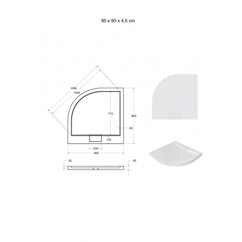 Vanička je vhodná na osadenie na moderné štvrťkruhové sprchové kúty Olsen Spa.