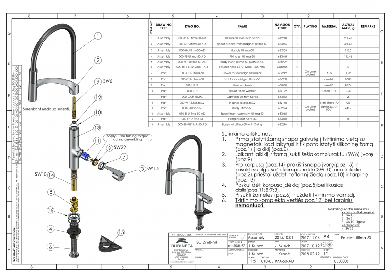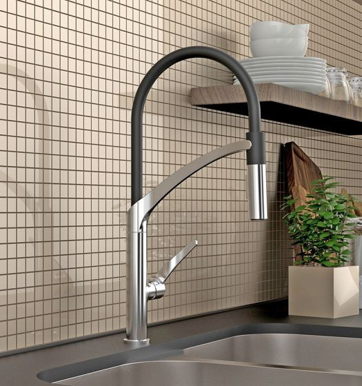 - Flexibilným masívne rameno so sprškou, uchytávanie spršky pomocou magnetu