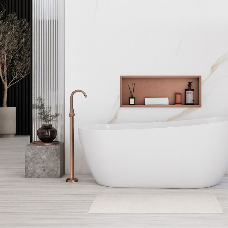 Vstavaná kúpeľňová polica vo farbe kartáčovanej medi je elegantné a funkčné riešenie, ktoré umožňuje praktické využitie priestoru v sprchovacom kúte alebo nad vaňou. Vyrobená z vysoko kvalitnej nerezovej ocele Aisi 304, je odolná voči vlhkosti, korózii a každodennému používaniu, čo z nej robí ideálnu voľbu pre moderné kúpeľne. Vďaka montáži do niky police zaisťuje estetický, minimalistický efekt a zároveň ponúka pohodlné miesto na uloženie kozmetiky, kúpeľňových doplnkov či ošetrujúcich prostriedkov. Povrchová úprava v kartáčovanej medi sa skvele hodí k armatúram a doplnkom v podobných odtieňoch a podčiarkuje moderný charakter interiéru.