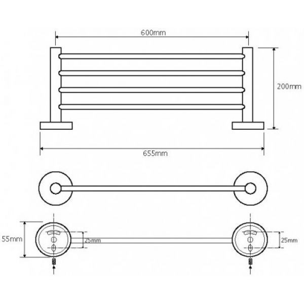 Polička na uteráky ECONOMY, stredová dĺžka 600 mm.