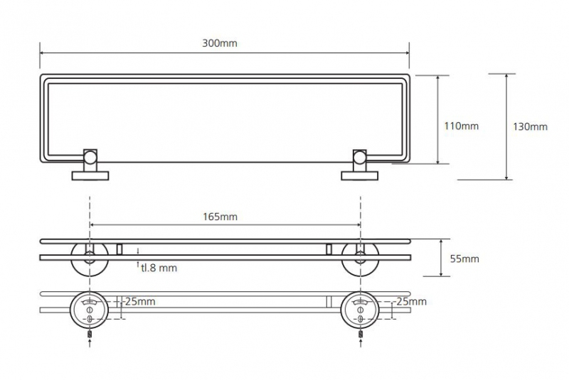 BEMETA OMEGA: Polička sklenená s výklopnou hrazdou 300 mm 104102202