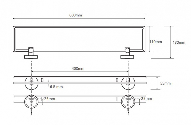 BEMETA OMEGA: Polička sklenená s výklopnou hrazdou 600 mm 104102212