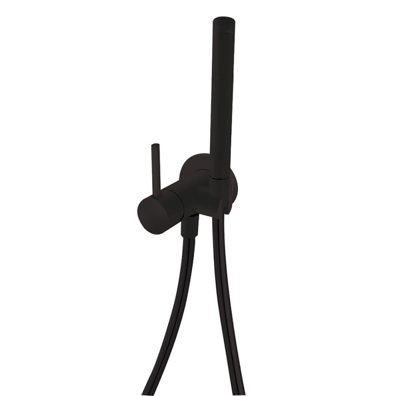 Páková podomietková bidetová batéria vrátane podomietkového telesa. V okrúhlom dizajne. Vo farebnom prevedení čierna mat. Prietok batérie je 5 litrov/minútu. Výška batérie je 7,9 cm. S matným povrchom.