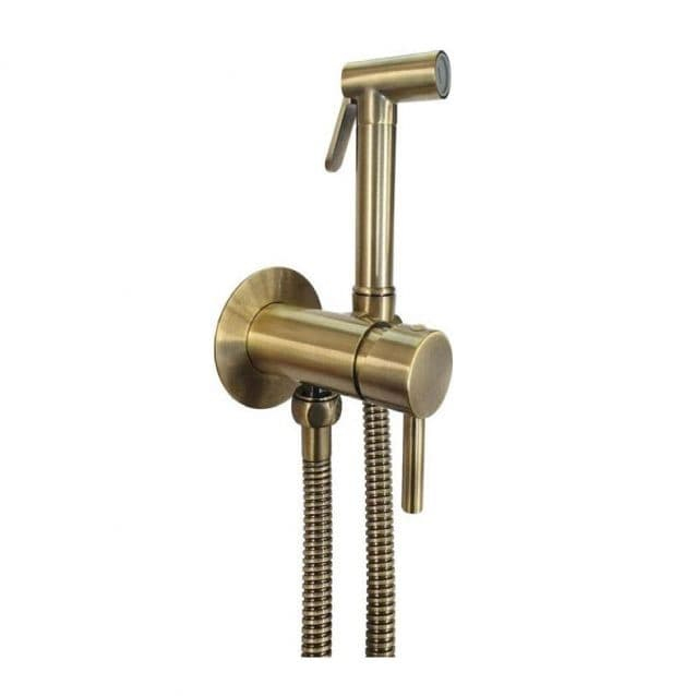 Páková podomítková bidetová baterie s bidetovou sprškou v bronzovém provedení. Průtok baterie je 6,7 litrů/minutu.