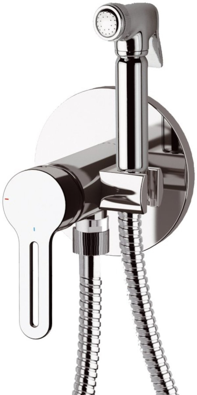 Páková podomítková bidetová baterie se sprchovým setem. V oblém designu. V chromovém provedení. Součástí baterie je podomítkové těleso.
