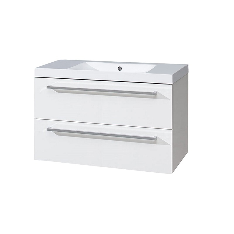 Bino, kúpeľňová skrinka s umývadlom z liateho mramoru, 1010x578x460 mm, biela lesk CN662M