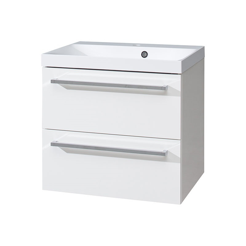 Bino, kúpeľňová skrinka s umývadlom z liateho mramoru, 610x578x460 mm, biela lesk CN660M