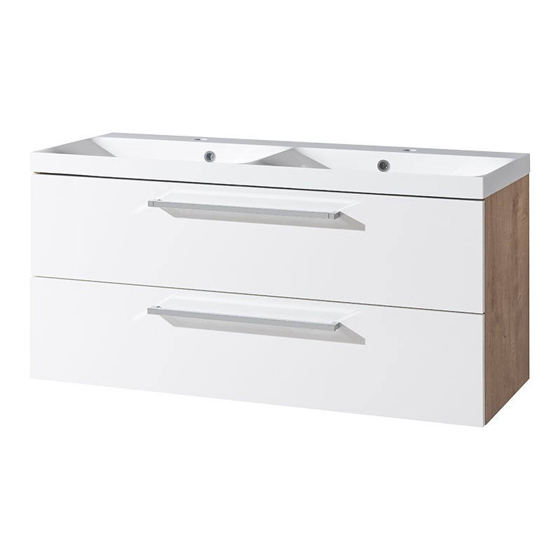 Bino, kúpeľňová skrinka, umývadlo z lit. mram, 1210x578x460, biela lesk / dub Arlington CN673M