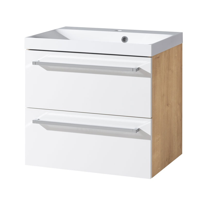 Bino, kúpeľňová skrinka, umývadlo z lit. mram, 610x578x460mm, biela lesk / dub Arlington CN670M