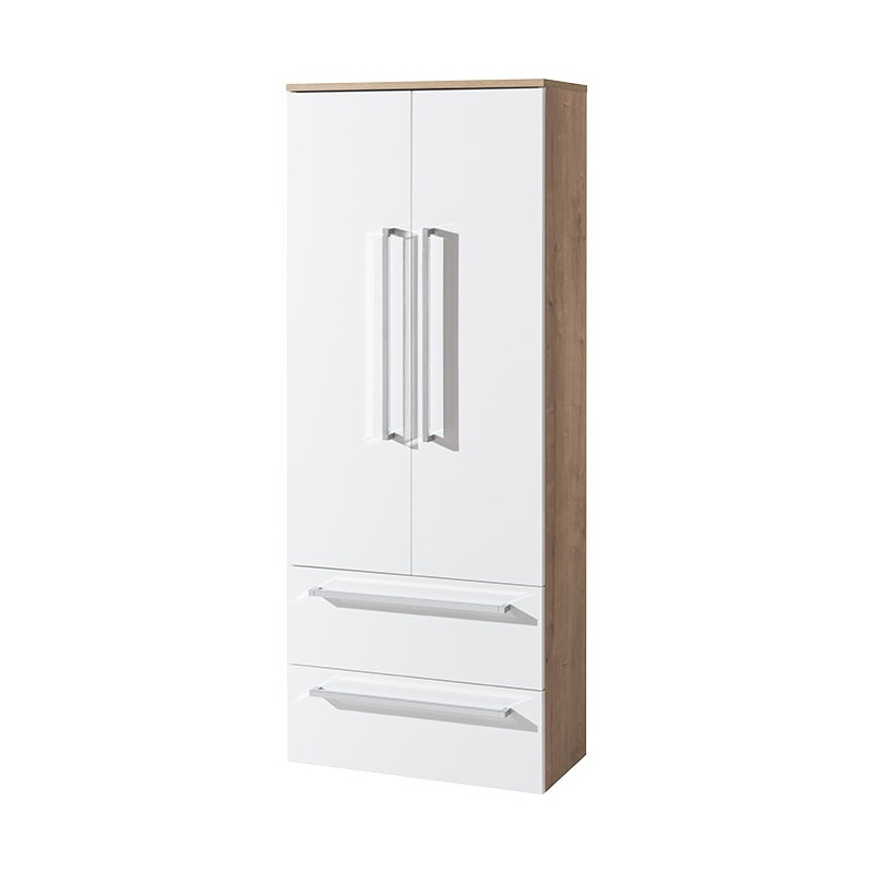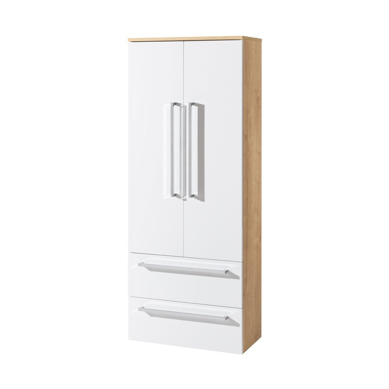 Bino kúpeľňová skrinka, závesná bez nožičiek, biela/dub, 651x1630x330 mm CN679