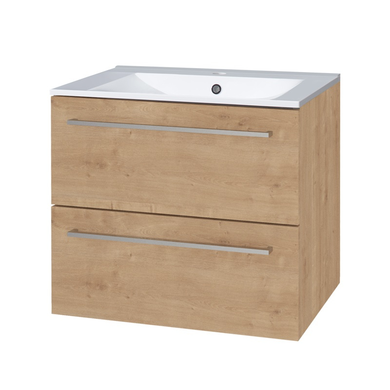Bino, kúpeľňová skrinka s keramickým umývadlom, 610x548x460 mm, spodná, dub Arlington, 2 zásuvky. Zobraziť viac