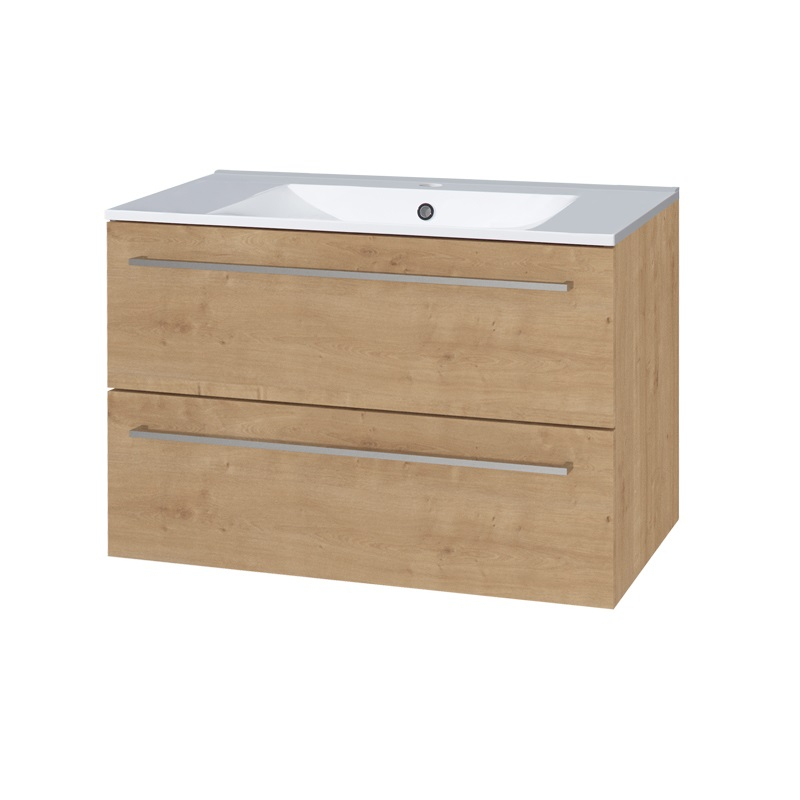 Bino, kúpeľňová skrinka s keramickým umývadlom, 810x548x460 mm, spodná, dub Arlington, 2 zásuvky. Zobraziť viac