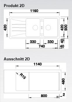 Blanco SONA 8 S 519706 dvojdrez s odkvapom, obojstranný kávový drez vstavaný