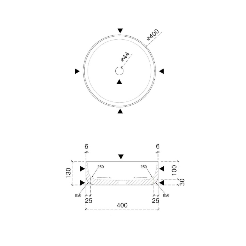 BLOK kamenné umývadlo na dosku, Ø 40cm, matný čierny Marquin