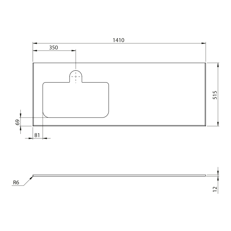 BRAHEA deska rockstone s otvorem 141x51,5cm (70+70cm), levá, bílá mat BL141-0101-L 58661