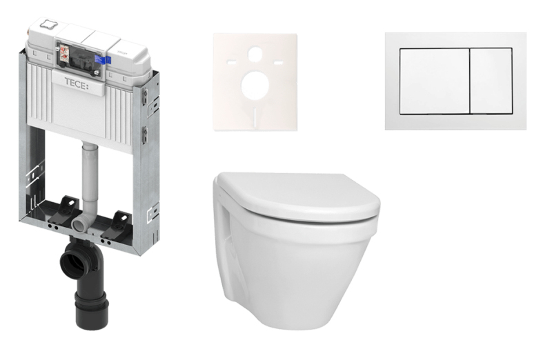 Závesný wc set - sada obsahuje modul na zamurovanie, WC nádržku TECE a WC sedátko. WC doštička je vyrobená z materiálu Duroplast. Ovládacie tlačidlo je z materiálu plast a je vo farebnom prevedení biela.