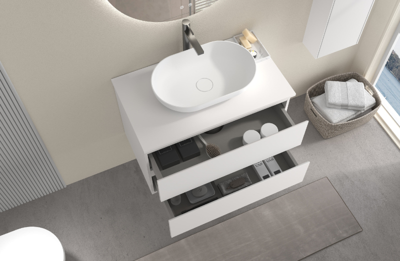 Naše kúpeľňové skrinky prichádzajú už v zmontovanom stave, čo vám ušetrí čas aj námahu pri ich inštalácii. Sú vyrobené z kvalitných materiálov a ponúkajú dostatok úložného priestoru pre všetky vaše potreby.
