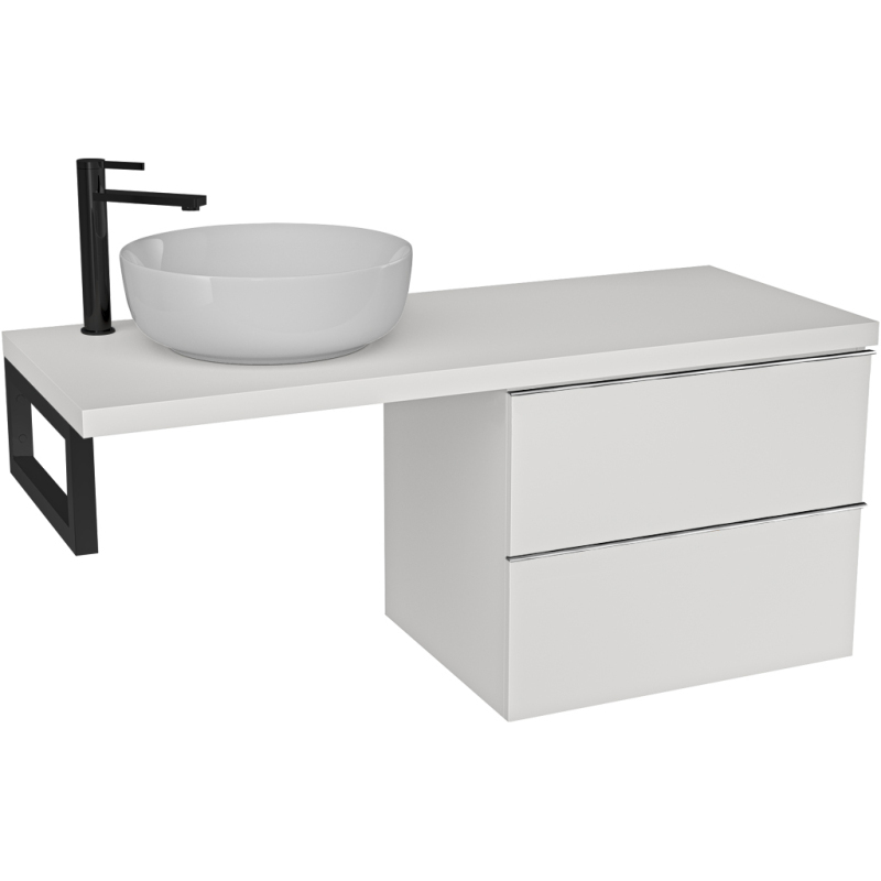 CERANO - Doska pod umývadlo Navira Pro - 121x46,5x3,6 cm - skrinka Velora 59 cm - biela matná, chrómová úchytka - konzola čierna