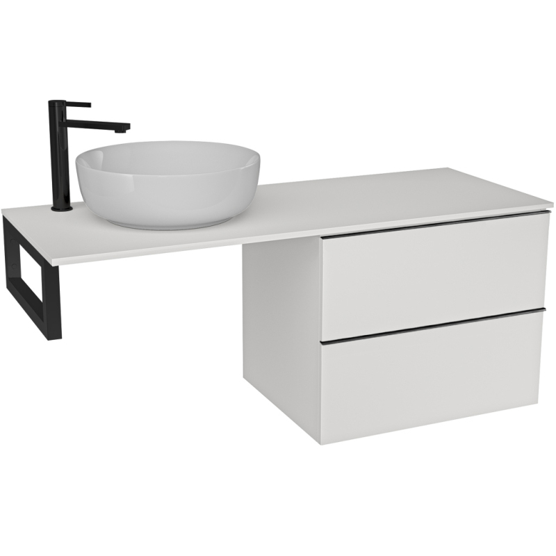 CERANO - Doska pod umývadlo Navira Slim - 141x46,5x3,6 cm - skrinka Velora 69 cm - biela matná, čierna úchytka - konzola čierna