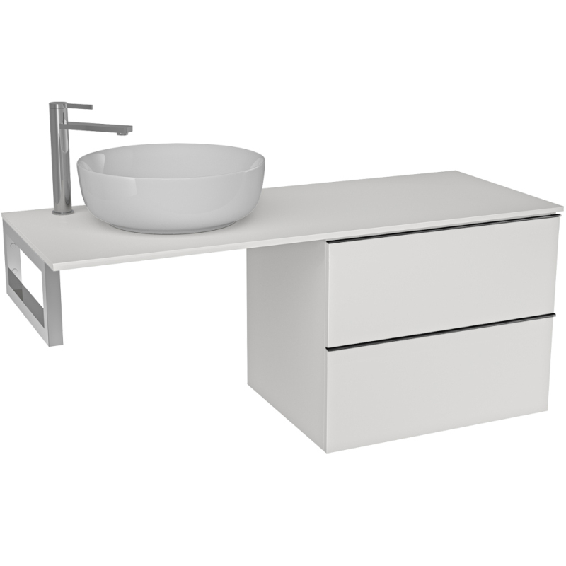 CERANO - Doska pod umývadlo Navira Slim - 141x46,5x3,6 cm - skrinka Velora 69 cm - biela matná, čierna úchytka - konzola chróm