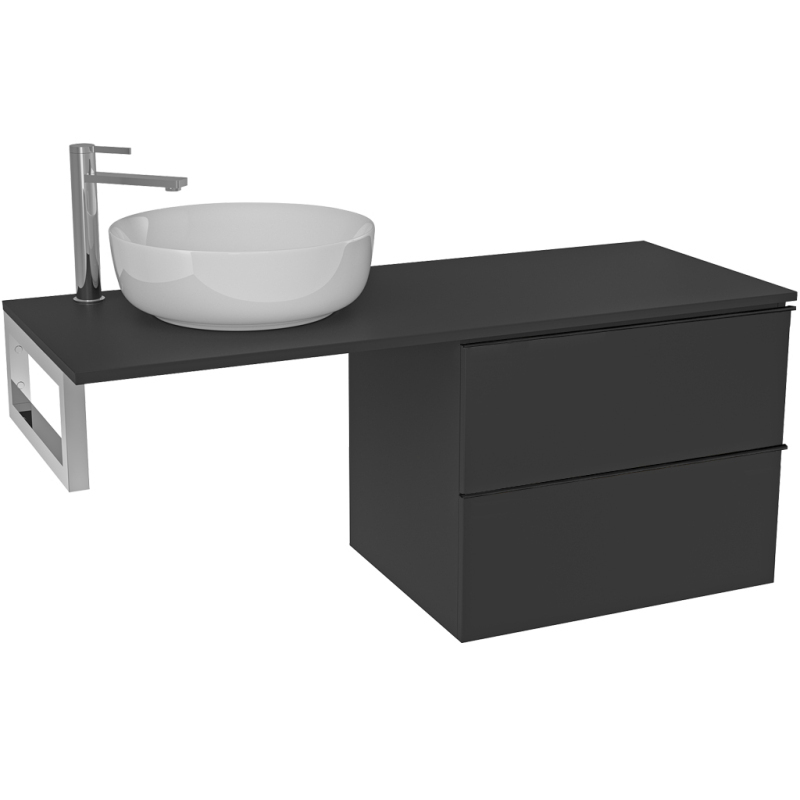 CERANO - Doska pod umývadlo Navira Slim - 161x46,5x3,6 cm - skrinka Velora 79 cm - čierna matná, čierna úchytka - konzola chróm