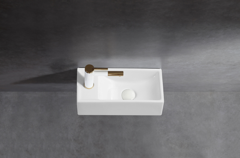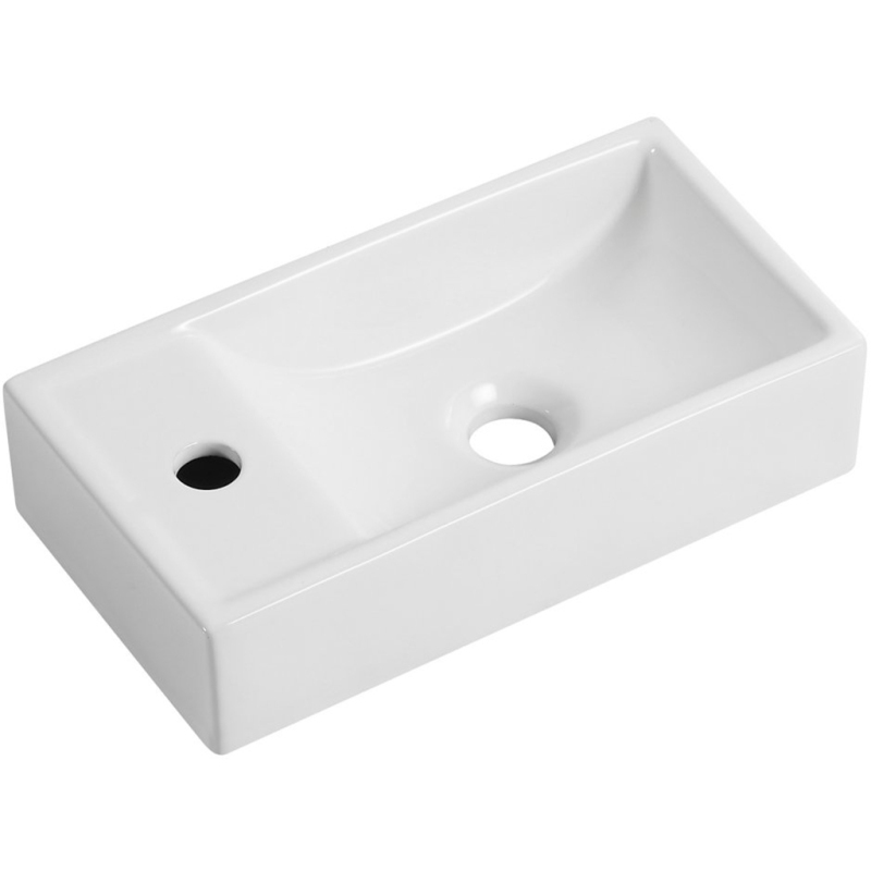 CERANO - Umývadlo keramické Giovanni, závesné ľavé - biela lesklá - 41x22,5 cm