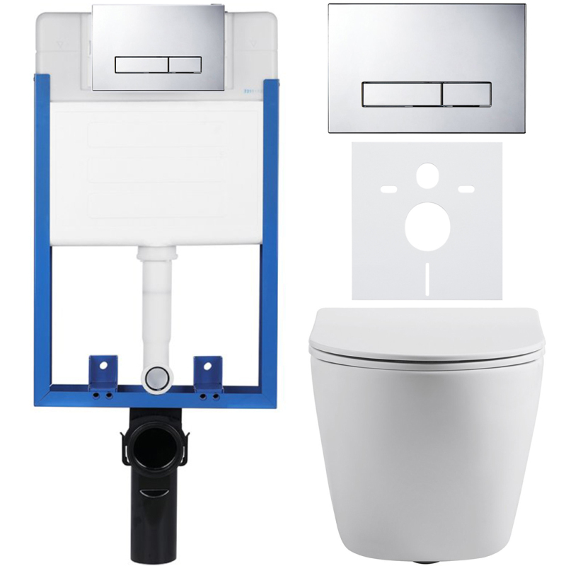 CERANO - Kompletný podomietkový WC set Lite/Cesso - biela matná - WC tlačidlo Slim, chróm - na zamurovanie - 49x36 cm