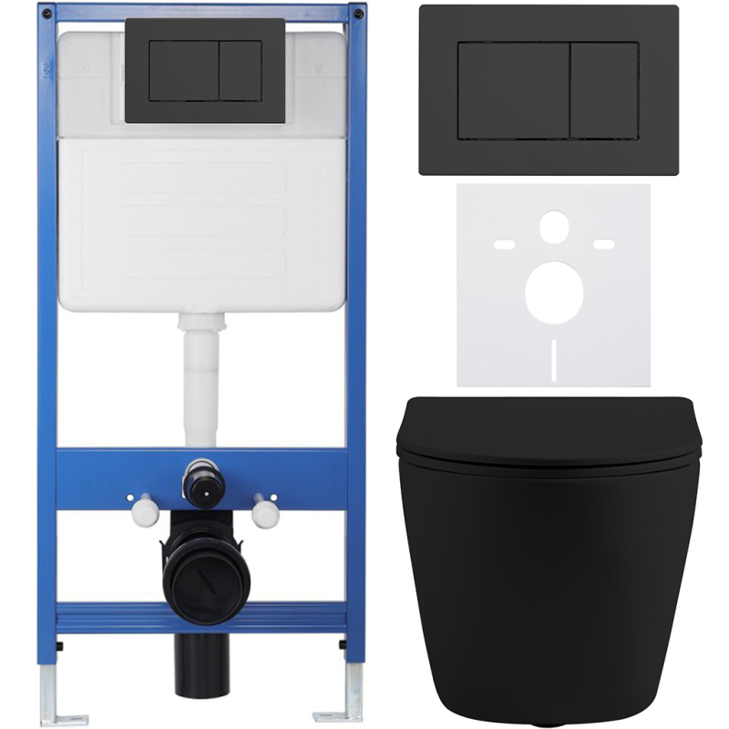 CERANO - Kompletný podomietkový WC set Lite/Cesso - čierna matná - WC tlačidlo Classic, čierne matné - predstenová inštalácia / sadrokartón - 49x36 cm