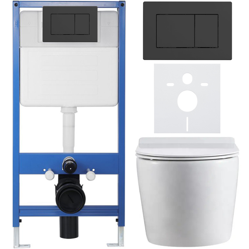 CERANO - Kompletný podomietkový WC set Lite/Felci - biela lesklá - WC tlačidlo Classic, čierne matné - predstenová inštalácia / sadrokartón - 52,5x36
