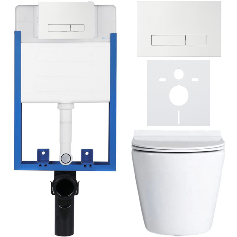 CERANO - Kompletný podomietkový WC set Norbi - biela lesklá - WC tlačidlo Slim, biele - na zamurovanie - 48,5x36,5 cm