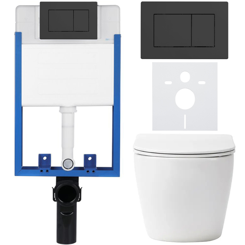 CERANO - Kompletný podomietkový WC set Lite/Verde - biela lesklá - WC tlačidlo Classic, čierne matné - na zamurovanie - 49x36 cm