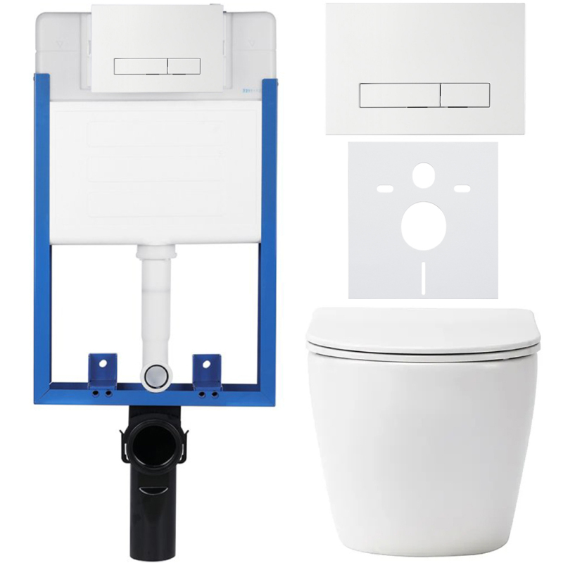CERANO - Kompletný podomietkový WC set Lite/Verde - biela matná - WC tlačidlo Slim, biele - na zamurovanie - 49x36 cm