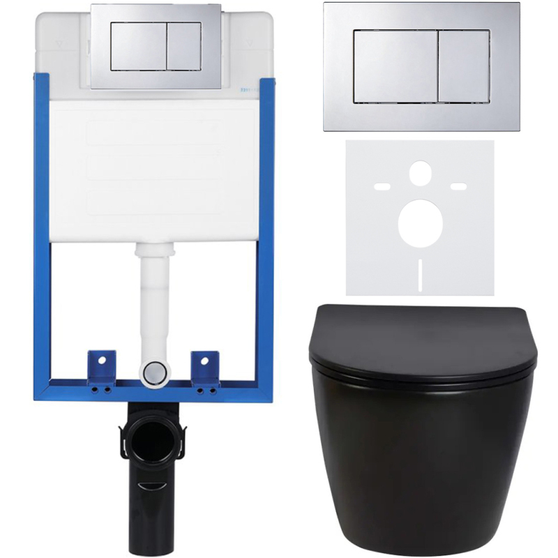 CERANO - Kompletný podomietkový WC set Verde - čierna lesklá - WC tlačidlo Classic, chróm - na zamurovanie - 49x36 cm